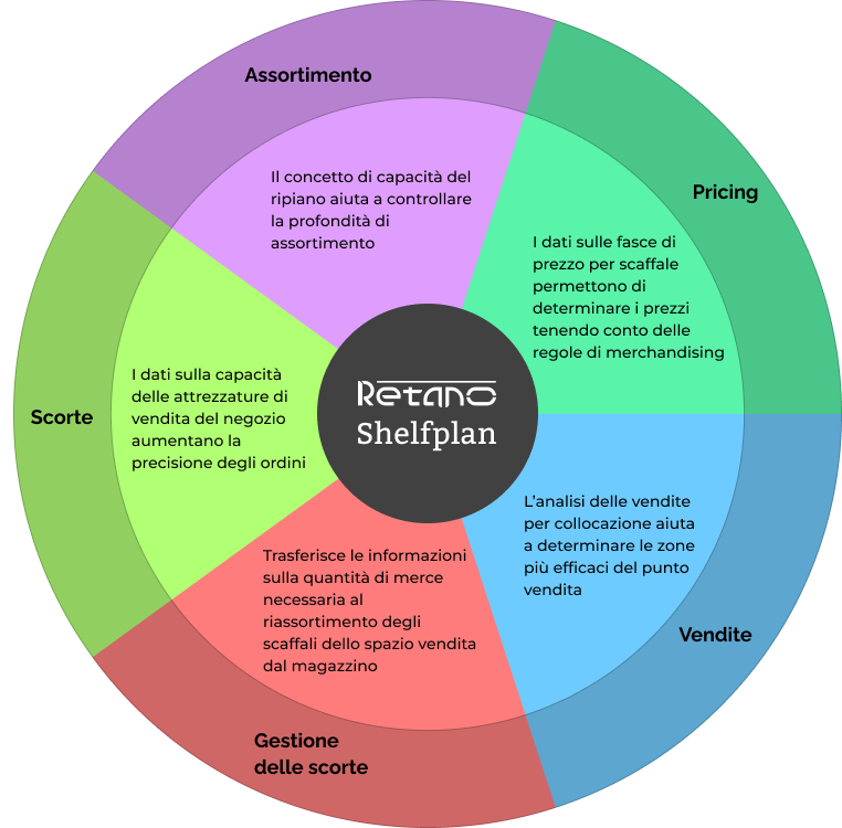 Creato per garantire spazi vendita efficienti e gestibili, Retano Shelfplan fornische una gestione di alta qualità degli indicatori di visual merchandising, riflettendo l’utilizzo ottimale degli spazi commerciali.