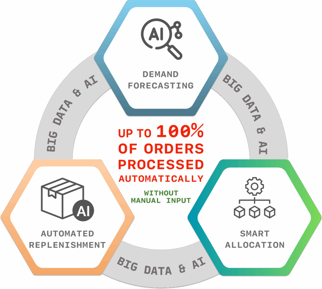 Our system calculates replenishment quantities based on sales forecasts, demand variability, and takes into account all relevant supply chain constraints. This ensures efficient inventory management while reducing the need for manual intervention.